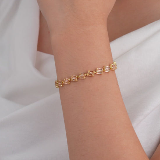 A touch of gold, a hint of glow, the Champagne Prism Tennis Bracelet is your perfect expression of timeless elegance and radiant grace.