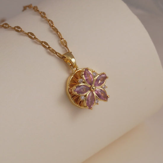 Let your style bloom with this captivating spinning floral pendant necklace!